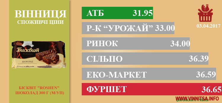 АТБ, пр. Юності, 51, ЕКО-маркет пр. Юності, 18, Сільпо, вул. Келецька, 105, Фуршет, Хмельницьке шосе, 145-б, Ринок «Урожай», вул. Пирогова, 50 а, Ринок, вул. Некрасова, 48.