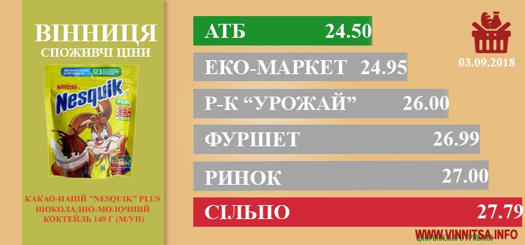 AТБ, пр. Юності, 51, ЕКО-маркет пр. Юності, 18, Сільпо, вул. Келецька, 105, Фуршет, вул. Е. Пікуса, 1-а , Ринок «Урожай», вул. Пирогова, 50 а, Ринок, вул. Некрасова, 4