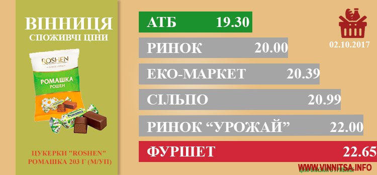 АТБ, пр. Юності, 51, ЕКО-маркет пр. Юності, 18, Сільпо, вул. Келецька, 105, Фуршет, вул. Е. Пікуса, 1-а , Ринок «Урожай», вул. Пирогова, 50 а, Ринок, вул. Некрасова, 48.