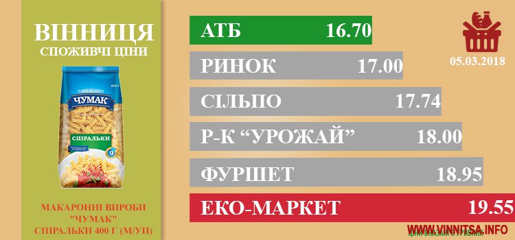 АТБ, пр. Юності, 51, ЕКО-маркет пр. Юності, 18, Сільпо, вул. Келецька, 105, Фуршет, вул. Е. Пікуса, 1-а , Ринок «Урожай», вул. Пирогова, 50 а, Ринок, вул. Некрасова, 48.