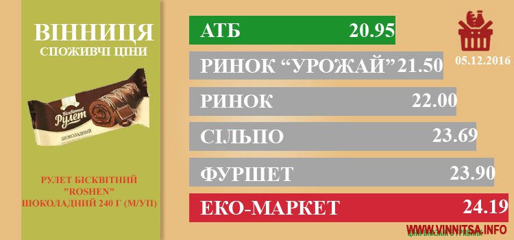 Моніторинг роздрібних цін на продукти харчування у магазинах торгівельних мереж м.Вінниця