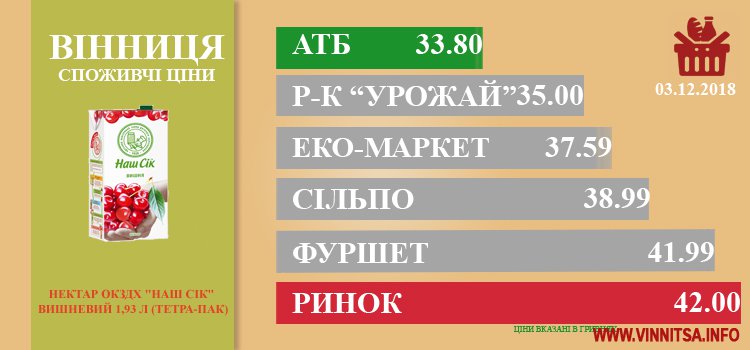 AТБ, пр. Юності, 51, ЕКО-маркет пр. Юності, 18, Сільпо, вул. Келецька, 105, Фуршет, вул. Е. Пікуса, 1-а , Ринок «Урожай», вул. Пирогова, 50 а, Ринок, вул. Некрасова, 4