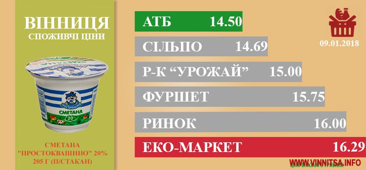 АТБ, пр. Юності, 51, ЕКО-маркет пр. Юності, 18, Сільпо, вул. Келецька, 105, Фуршет, вул. Е. Пікуса, 1-а , Ринок «Урожай», вул. Пирогова, 50 а, Ринок, вул. Некрасова, 48