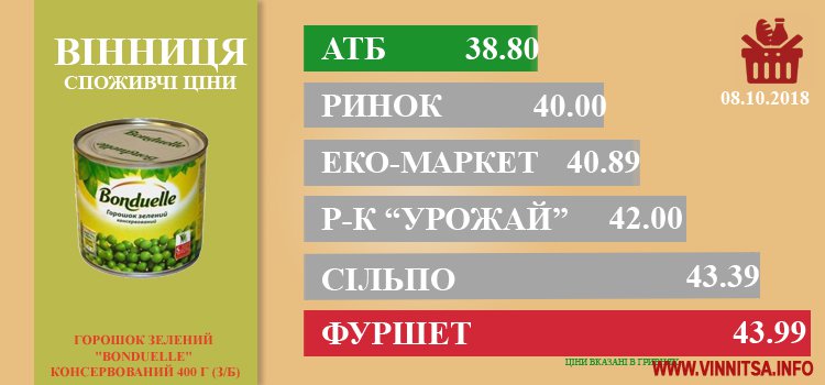 AТБ, пр. Юності, 51, ЕКО-маркет пр. Юності, 18, Сільпо, вул. Келецька, 105, Фуршет, вул. Е. Пікуса, 1-а , Ринок «Урожай», вул. Пирогова, 50 а, Ринок, вул. Некрасова, 4