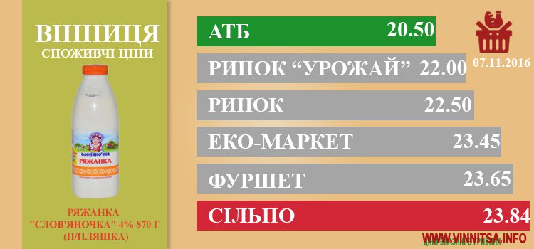 АТБ, пр. Юності, 51, ЕКО-маркет пр. Юності, 18, Сільпо, вул. Келецька, 105, Фуршет, Хмельницьке шосе, 145-б, Ринок «Урожай», вул. Пирогова, 50 а, Ринок, вул. Некрасова, 48.
