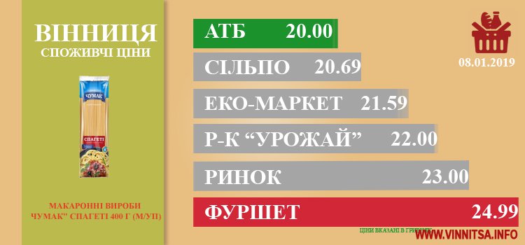 AТБ, пр. Юності, 51, ЕКО-маркет пр. Юності, 18, Сільпо, вул. Келецька, 105, Фуршет, вул. Е. Пікуса, 1-а , Ринок «Урожай», вул. Пирогова, 50 а, Ринок, вул. Некрасова, 4