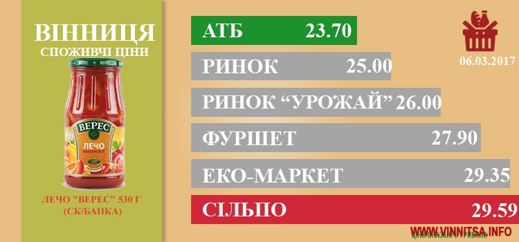АТБ, пр. Юності, 51, ЕКО-маркет пр. Юності, 18, Сільпо, вул. Келецька, 105, Фуршет, Хмельницьке шосе, 145-б, Ринок «Урожай», вул. Пирогова, 50 а, Ринок, вул. Некрасова, 48.
