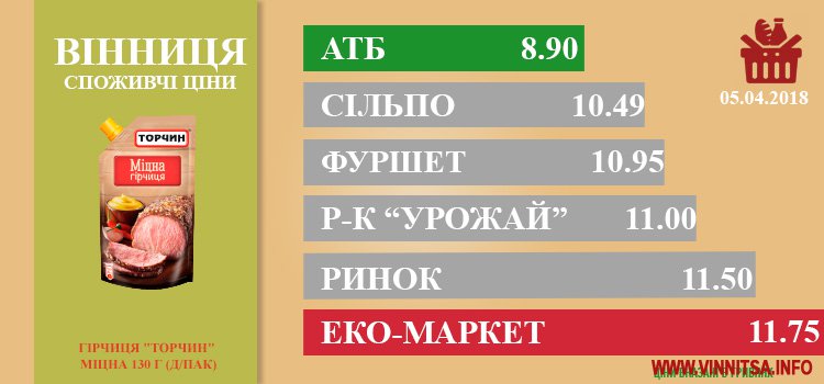 AТБ, пр. Юності, 51, ЕКО-маркет пр. Юності, 18, Сільпо, вул. Келецька, 105, Фуршет, вул. Е. Пікуса, 1-а , Ринок «Урожай», вул. Пирогова, 50 а, Ринок, вул. Некрасова, 48.