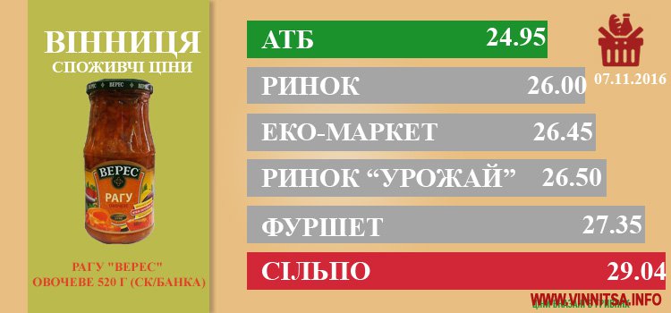 Ціни в Вінниці за 10.11.2016
