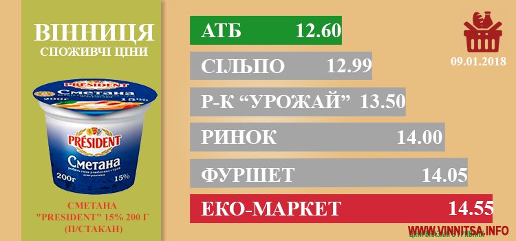 АТБ, пр. Юності, 51, ЕКО-маркет пр. Юності, 18, Сільпо, вул. Келецька, 105, Фуршет, вул. Е. Пікуса, 1-а , Ринок «Урожай», вул. Пирогова, 50 а, Ринок, вул. Некрасова, 48