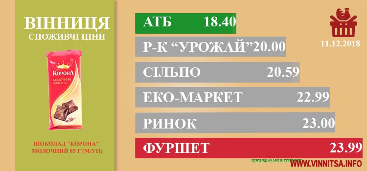 AТБ, пр. Юності, 51, ЕКО-маркет пр. Юності, 18, Сільпо, вул. Келецька, 105, Фуршет, вул. Е. Пікуса, 1-а , Ринок «Урожай», вул. Пирогова, 50 а, Ринок, вул. Некрасова, 4