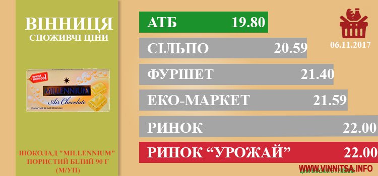 АТБ, пр. Юності, 51, ЕКО-маркет пр. Юності, 18, Сільпо, вул. Келецька, 105, Фуршет, вул. Е. Пікуса, 1-а , Ринок «Урожай», вул. Пирогова, 50 а, Ринок, вул. Некрасова, 48.