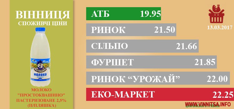 АТБ, пр. Юності, 51, ЕКО-маркет пр. Юності, 18, Сільпо, вул. Келецька, 105, Фуршет, Хмельницьке шосе, 145-б, Ринок «Урожай», вул. Пирогова, 50 а, Ринок, вул. Некрасова, 48.