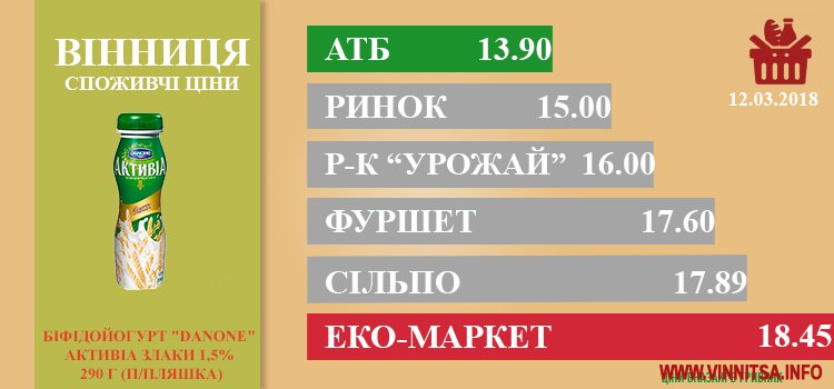 АТБ, пр. Юності, 51, ЕКО-маркет пр. Юності, 18, Сільпо, вул. Келецька, 105, Фуршет, вул. Е. Пікуса, 1-а , Ринок «Урожай», вул. Пирогова, 50 а, Ринок, вул. Некрасова, 48.