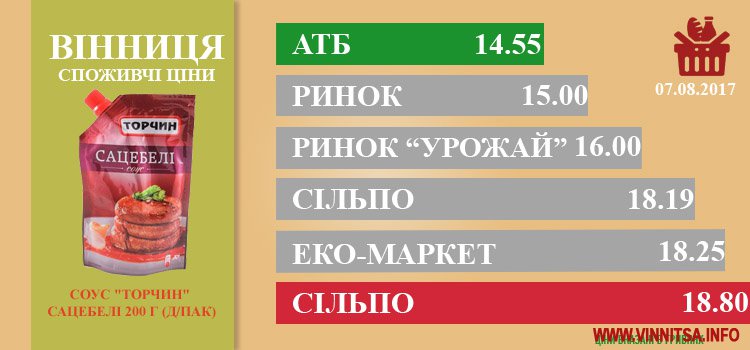 АТБ, пр. Юності, 51, ЕКО-маркет пр. Юності, 18, Сільпо, вул. Келецька, 105, Фуршет, Хмельницьке шосе, 145-б, Ринок «Урожай», вул. Пирогова, 50 а, Ринок, вул. Некрасова, 48.