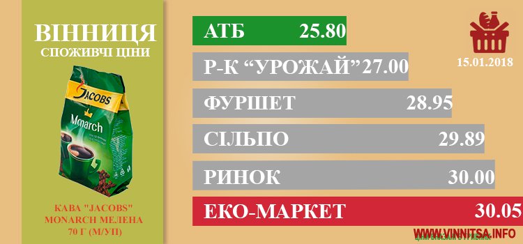 АТБ, пр. Юності, 51, ЕКО-маркет пр. Юності, 18, Сільпо, вул. Келецька, 105, Фуршет, вул. Е. Пікуса, 1-а , Ринок «Урожай», вул. Пирогова, 50 а, Ринок, вул. Некрасова, 48