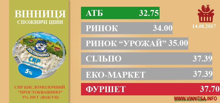 АТБ, пр. Юності, 51, ЕКО-маркет пр. Юності, 18, Сільпо, вул. Келецька, 105, Фуршет, Хмельницьке шосе, 145-б, Ринок «Урожай», вул. Пирогова, 50 а, Ринок, вул. Некрасова, 48.