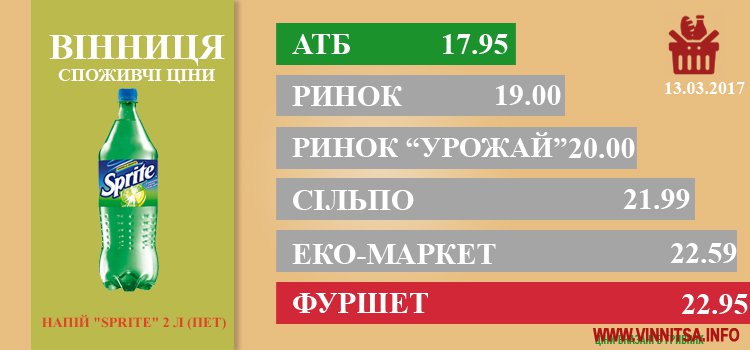АТБ, пр. Юності, 51, ЕКО-маркет пр. Юності, 18, Сільпо, вул. Келецька, 105, Фуршет, Хмельницьке шосе, 145-б, Ринок «Урожай», вул. Пирогова, 50 а, Ринок, вул. Некрасова, 48.