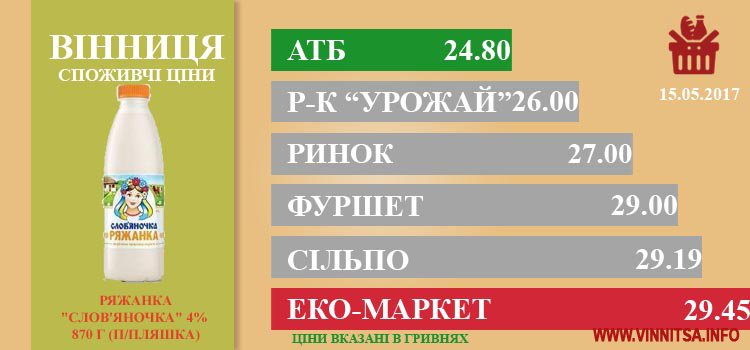 АТБ, пр. Юності, 51, ЕКО-маркет пр. Юності, 18, Сільпо, вул. Келецька, 105, Фуршет, Хмельницьке шосе, 145-б, Ринок «Урожай», вул. Пирогова, 50 а, Ринок, вул. Некрасова, 48.