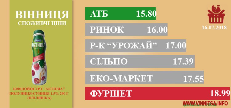 AТБ, пр. Юності, 51, ЕКО-маркет пр. Юності, 18, Сільпо, вул. Келецька, 105, Фуршет, вул. Е. Пікуса, 1-а , Ринок «Урожай», вул. Пирогова, 50 а, Ринок, вул. Некрасова, 4