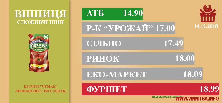 AТБ, пр. Юності, 51, ЕКО-маркет пр. Юності, 18, Сільпо, вул. Келецька, 105, Фуршет, вул. Е. Пікуса, 1-а , Ринок «Урожай», вул. Пирогова, 50 а, Ринок, вул. Некрасова, 4
