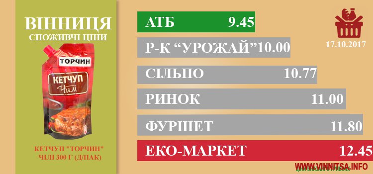 АТБ, пр. Юності, 51, ЕКО-маркет пр. Юності, 18, Сільпо, вул. Келецька, 105, Фуршет, вул. Е. Пікуса, 1-а , Ринок «Урожай», вул. Пирогова, 50 а, Ринок, вул. Некрасова, 48.
