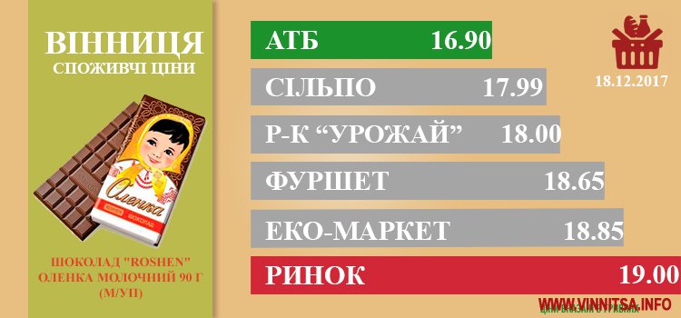 АТБ, пр. Юності, 51, ЕКО-маркет пр. Юності, 18, Сільпо, вул. Келецька, 105, Фуршет, вул. Е. Пікуса, 1-а , Ринок «Урожай», вул. Пирогова, 50 а, Ринок, вул. Некрасова, 48.