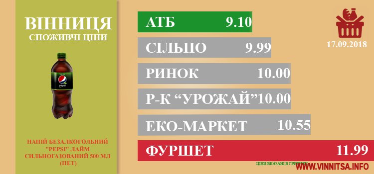 AТБ, пр. Юності, 51, ЕКО-маркет пр. Юності, 18, Сільпо, вул. Келецька, 105, Фуршет, вул. Е. Пікуса, 1-а , Ринок «Урожай», вул. Пирогова, 50 а, Ринок, вул. Некрасова, 4