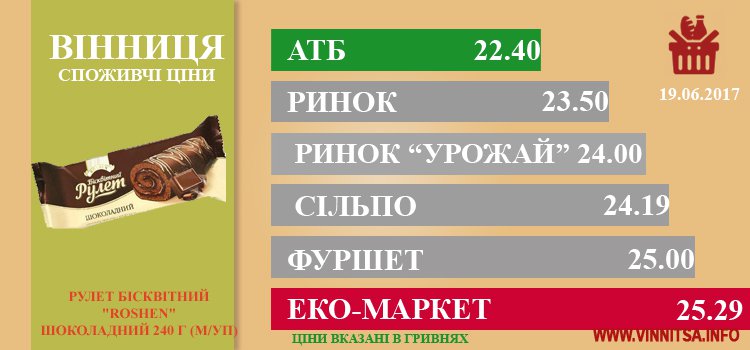 АТБ, пр. Юності, 51, ЕКО-маркет пр. Юності, 18, Сільпо, вул. Келецька, 105, Фуршет, Хмельницьке шосе, 145-б, Ринок «Урожай», вул. Пирогова, 50 а, Ринок, вул. Некрасова, 48.