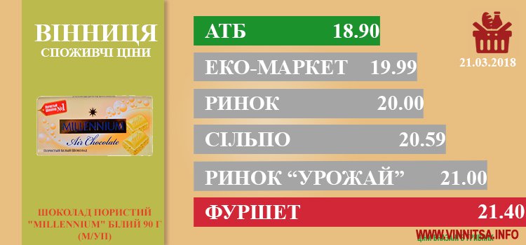 AТБ, пр. Юності, 51, ЕКО-маркет пр. Юності, 18, Сільпо, вул. Келецька, 105, Фуршет, вул. Е. Пікуса, 1-а , Ринок «Урожай», вул. Пирогова, 50 а, Ринок, вул. Некрасова, 48.