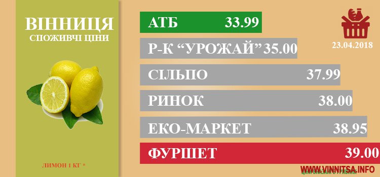 Ціни в Вінниці за 23.04.2018