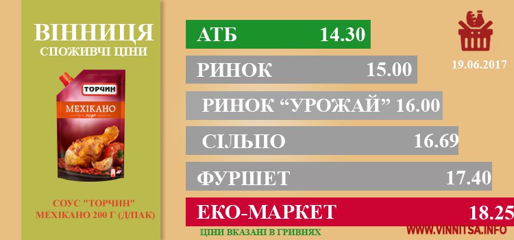 АТБ, пр. Юності, 51, ЕКО-маркет пр. Юності, 18, Сільпо, вул. Келецька, 105, Фуршет, Хмельницьке шосе, 145-б, Ринок «Урожай», вул. Пирогова, 50 а, Ринок, вул. Некрасова, 48.