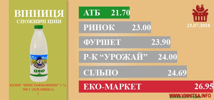 AТБ, пр. Юності, 51, ЕКО-маркет пр. Юності, 18, Сільпо, вул. Келецька, 105, Фуршет, вул. Е. Пікуса, 1-а , Ринок «Урожай», вул. Пирогова, 50 а, Ринок, вул. Некрасова, 4