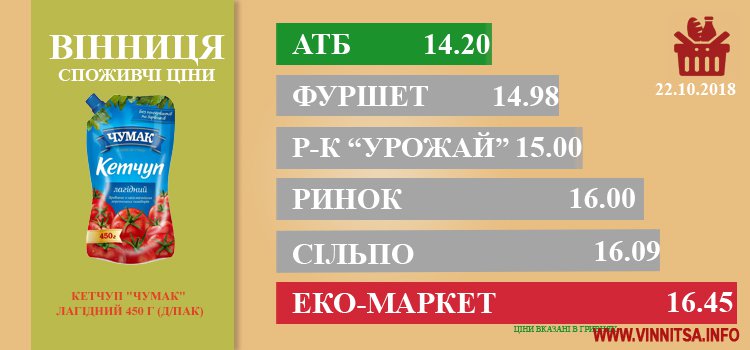AТБ, пр. Юності, 51, ЕКО-маркет пр. Юності, 18, Сільпо, вул. Келецька, 105, Фуршет, вул. Е. Пікуса, 1-а , Ринок «Урожай», вул. Пирогова, 50 а, Ринок, вул. Некрасова, 4