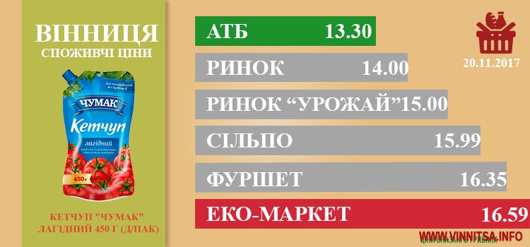 АТБ, пр. Юності, 51, ЕКО-маркет пр. Юності, 18, Сільпо, вул. Келецька, 105, Фуршет, вул. Е. Пікуса, 1-а , Ринок «Урожай», вул. Пирогова, 50 а, Ринок, вул. Некрасова, 48.