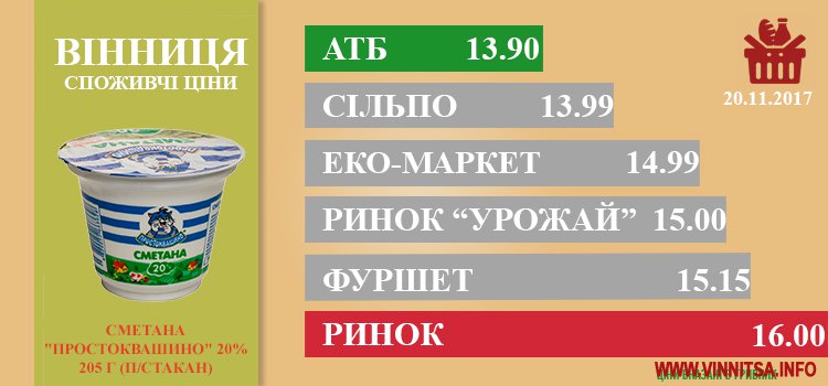 АТБ, пр. Юності, 51, ЕКО-маркет пр. Юності, 18, Сільпо, вул. Келецька, 105, Фуршет, вул. Е. Пікуса, 1-а , Ринок «Урожай», вул. Пирогова, 50 а, Ринок, вул. Некрасова, 48.
