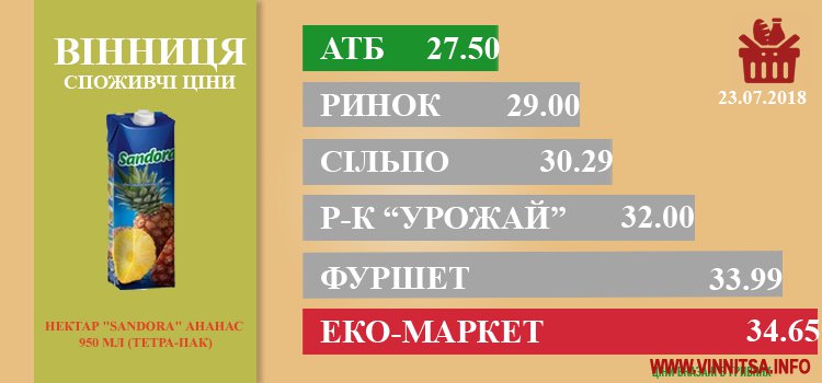 AТБ, пр. Юності, 51, ЕКО-маркет пр. Юності, 18, Сільпо, вул. Келецька, 105, Фуршет, вул. Е. Пікуса, 1-а , Ринок «Урожай», вул. Пирогова, 50 а, Ринок, вул. Некрасова, 4