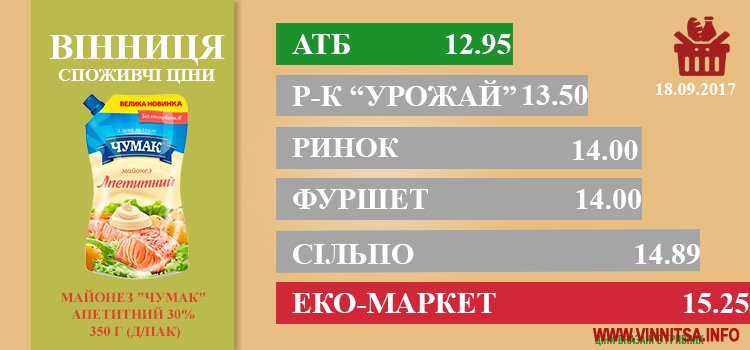 АТБ, пр. Юності, 51, ЕКО-маркет пр. Юності, 18, Сільпо, вул. Келецька, 105, Фуршет, Хмельницьке шосе, 145-б, Ринок «Урожай», вул. Пирогова, 50 а, Ринок, вул. Некрасова, 48.