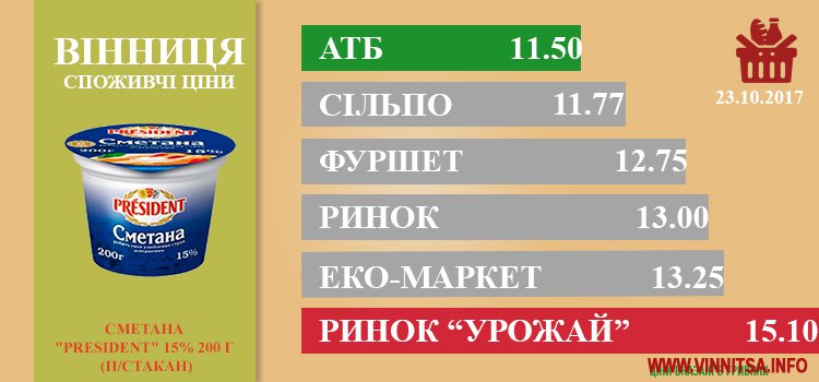 АТБ, пр. Юності, 51, ЕКО-маркет пр. Юності, 18, Сільпо, вул. Келецька, 105, Фуршет, вул. Е. Пікуса, 1-а , Ринок «Урожай», вул. Пирогова, 50 а, Ринок, вул. Некрасова, 48.
