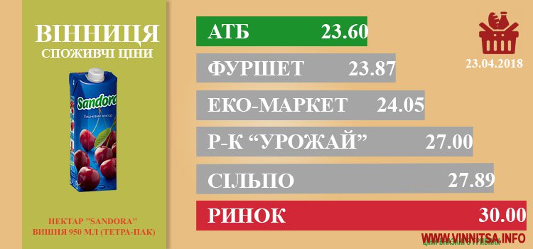 AТБ, пр. Юності, 51, ЕКО-маркет пр. Юності, 18, Сільпо, вул. Келецька, 105, Фуршет, вул. Е. Пікуса, 1-а , Ринок «Урожай», вул. Пирогова, 50 а, Ринок, вул. Некрасова, 48.