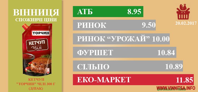 АТБ, пр. Юності, 51, ЕКО-маркет пр. Юності, 18, Сільпо, вул. Келецька, 105, Фуршет, Хмельницьке шосе, 145-б, Ринок «Урожай», вул. Пирогова, 50 а, Ринок, вул. Некрасова, 48.