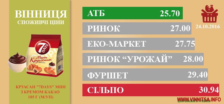 АТБ пр. Юності, 51, ЕКО-маркет пр. Юності, 18, Сільпо, вул. Келецька, 105, Фуршет, Хмельницьке шосе, 145-б, Ринок «Урожай», вул. Пирогова, 50 а, Ринок, вул. Некрасова, 48.