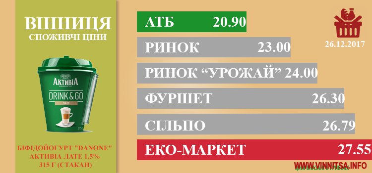 АТБ, пр. Юності, 51, ЕКО-маркет пр. Юності, 18, Сільпо, вул. Келецька, 105, Фуршет, вул. Е. Пікуса, 1-а , Ринок «Урожай», вул. Пирогова, 50 а, Ринок, вул. Некрасова, 48