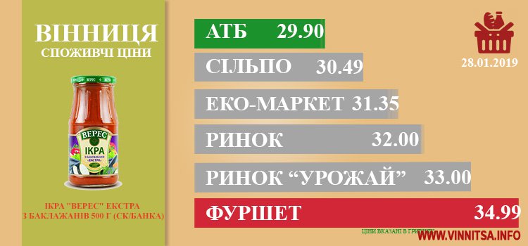 AТБ, пр. Юності, 51, ЕКО-маркет пр. Юності, 18, Сільпо, вул. Келецька, 105, Фуршет, вул. Е. Пікуса, 1-а , Ринок «Урожай», вул. Пирогова, 50 а, Ринок, вул. Некрасова, 4