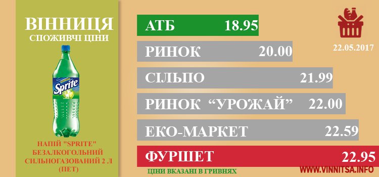 АТБ, пр. Юності, 51, ЕКО-маркет пр. Юності, 18, Сільпо, вул. Келецька, 105, Фуршет, Хмельницьке шосе, 145-б, Ринок «Урожай», вул. Пирогова, 50 а, Ринок, вул. Некрасова, 48.