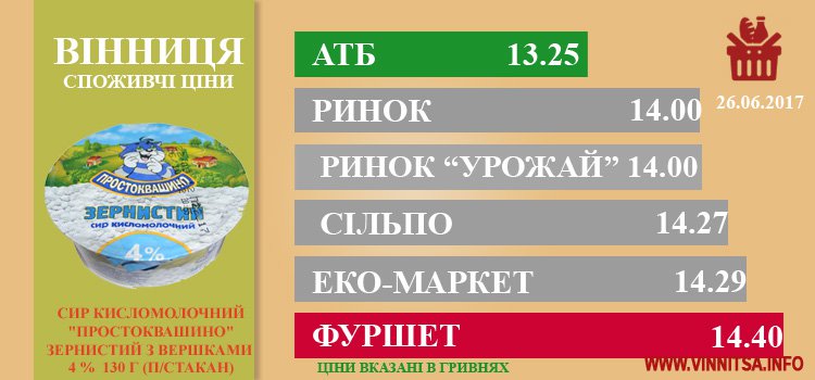 АТБ, пр. Юності, 51, ЕКО-маркет пр. Юності, 18, Сільпо, вул. Келецька, 105, Фуршет, Хмельницьке шосе, 145-б, Ринок «Урожай», вул. Пирогова, 50 а, Ринок, вул. Некрасова, 48.