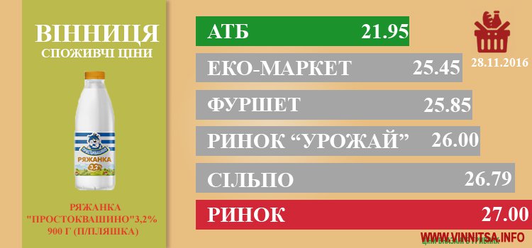 Моніторинг роздрібних цін на продукти харчування у магазинах торгівельних мереж м.Вінниця