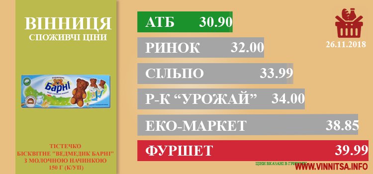 AТБ, пр. Юності, 51, ЕКО-маркет пр. Юності, 18, Сільпо, вул. Келецька, 105, Фуршет, вул. Е. Пікуса, 1-а , Ринок «Урожай», вул. Пирогова, 50 а, Ринок, вул. Некрасова, 4