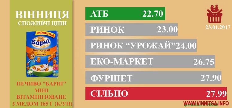 Моніторинг роздрібних цін на продукти харчування у магазинах торгівельних мереж м.Вінниця