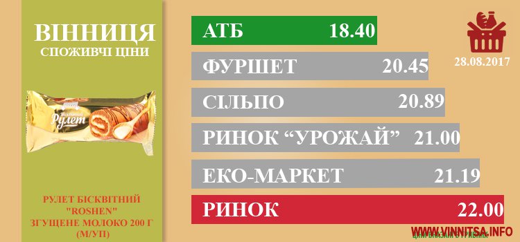 АТБ, пр. Юності, 51, ЕКО-маркет пр. Юності, 18, Сільпо, вул. Келецька, 105, Фуршет, Хмельницьке шосе, 145-б, Ринок «Урожай», вул. Пирогова, 50 а, Ринок, вул. Некрасова, 48
